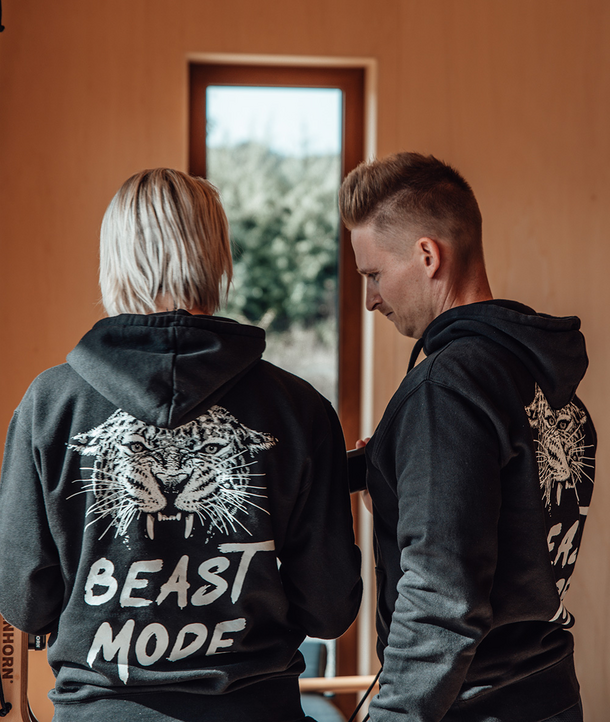 Der Signature BEAST MODE Hoodie in klassischem Schwarz ist dein Begleiter für Training, Alltag und jede Challenge. Vorn das dezente TRIM-FIT Icon, hinten das volle Statement: BEAST MODE mit kraftvollem Leopard-Motiv. Unisex-Schnitt, relaxte Passform – gemacht für alle, die Stärke leben, nicht nur zeigen.